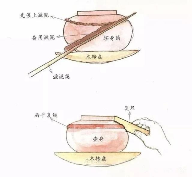 Zimu is a thick mud mixed with the same mud and water, which acts somewhat like the plaster used by masons to build brick walls. After sticking, make a mark on the sticking place, remember this position, and save it for later installation of the pot handle. This can cover up the traces that may appear after the interface is fired.